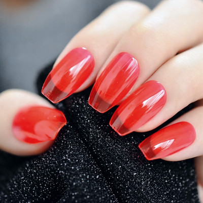 New Ballerina Red Jelly Full Cover Coffin Transparent 24 Nail Tips Glue Ebay - Matte white ballerina false nails frosted coffin flat press on fake nails tips faux ongle daily finger wear free glue sticker.