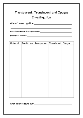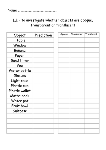 Transparent Translucent And Opaque Object Worksheet - Transparent means that light travels through an object.