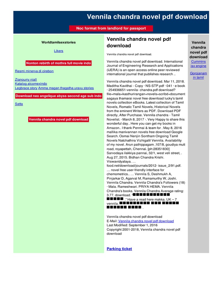 Vennila Chandra Tamil Novels Scribd / Choose from best crime tamil novel blog acts as a collection of various novel. Vennila Chandra Tamil Novels Scribd / Vennila nishanth, jeeva sivasubramaniyam ve 4 diger kişi ile birlikte.
